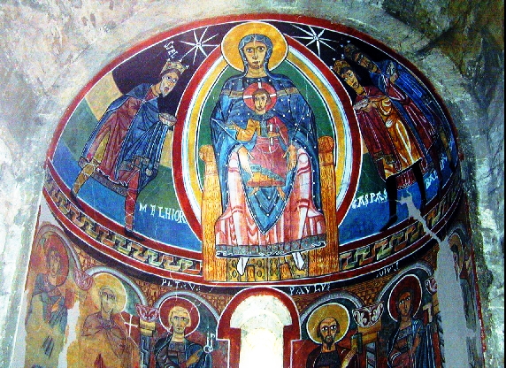 Pinturas románicas del ábside de St. Climent de Tahull, Vall de Bohí (Lleida) (Foto sin flash, Nikon Coolpix 950) |