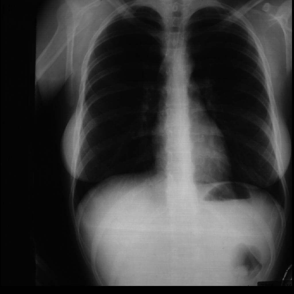 Imagen de una radiografía en la que existen zonas oscuras porco visibles |